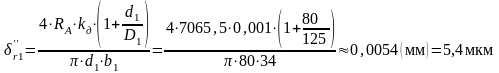 (тут kд = 0,001 - коефіцієнт деформації за [2, п.9.4]), d - внутрішній діаметр підшипника, D - зовнішній діаметр підшипника, b - ширина підшипника за [2, дод.4])