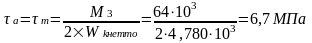 Коэффициент запаса прочности по касательным напряжениям (ф.8.9):