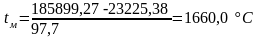 Общий расход тепла составит 5007,6 + 76,76tм + 20,94·tМ – 13816,2+ 20243,3 + 2529 + 1357 + 1455,49 + 872,21 + 5576,98 = 23225,38 + 97,7tм. Приравняв приходную и расходную части теплового баланса, определим температуру жидкого металла в конце продувки: