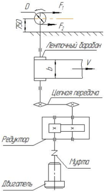 Ft = F1 – F2 = 7,2 - 5,0 = 2,2 кН – окружная сила на барабане.