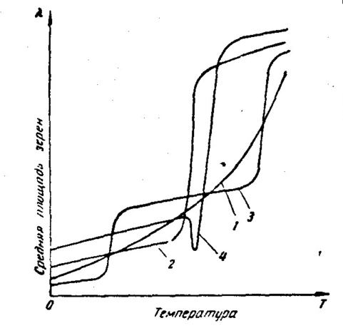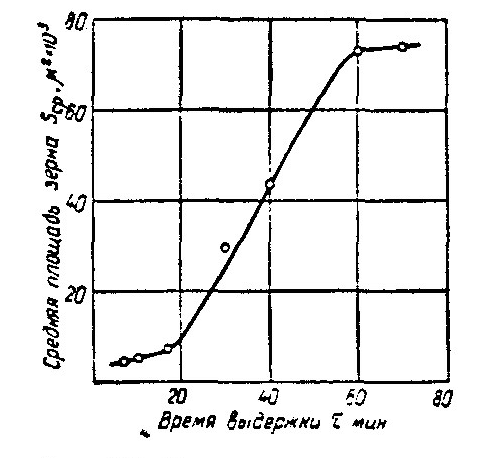 определенной «критической» температуре. При этом изменение температуры всего лишь на несколько градусов приводит к возрастанию площади зерен в плоскости шлифа во много десятков и даже сотен раз.