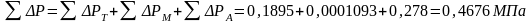 ΣΔPТ=0,0067+0,0979+0,0849=0,1895МПа.