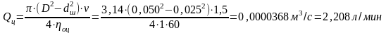 где ηоц-объемный к.п.д. гидроцилиндра, при уплотнении поршня резиновыми кольцами и манжетами ηоц=1.0;