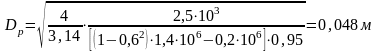 [σр]- допустимое напряжение разрыва материала трубы (30…50% временного сопротивления материала), [σр]=0.5·200=100 Мпа,