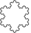 Снежинка Коха представляет собой линию бесконечной длины, ограничивающую конечную площадь, которая в 1.6 раза больше площади образующего ее треугольника.