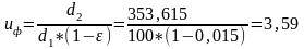 Определим фактическое передаточное число uф и проверим его отклонение ∆u от заданного u:
