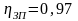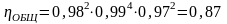 - общее КПД звеньев кинематической цепи: