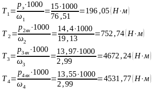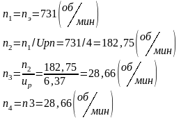 2.6 Определение на каждом валу привода частоты вращения, угловой скорости, мощности и вращающего момента.