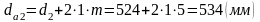 окружностей вершин и впадин зубьев колес внешнего зацепления: