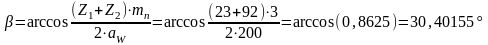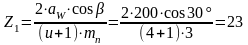 5. Определение угла наклона зубьев, а также чисел зубьев шестерни и колеса.