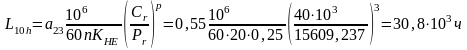 (для шариковых подшипников), определим расчётный ресурс (долговечность) подшипника опоры А