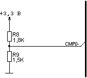 На дільник R8R9 подається напруга Uживл = 3,3 В. Максимальний вхідний струм Івх компаратора становить 1 нА.