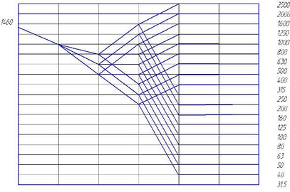 Имея значения nmax, nmin, z и знаменатель ряда φ, определяем промежуточные значения частот вращения шпинделя [2].