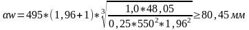 aw2 = m * Σz / 2 = 4 * 80 / 2 = 160 мм