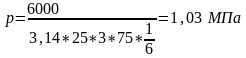 Площадь поперечного сечения стержня винта при d1 = d – t = 25 – 6 = 19 мм.