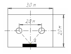 Определим условную освещенность контрольной точки А от светильника: