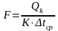 где Qk – тепло калорифера, Вт; К – коэффициент теплопередачи, Вт/м2·град; ∆tср – среднелогарифмическая разность температур, °С.
