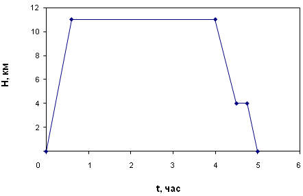 Крейсерский полет на Н=11000м, со скоростью V=950км/ч