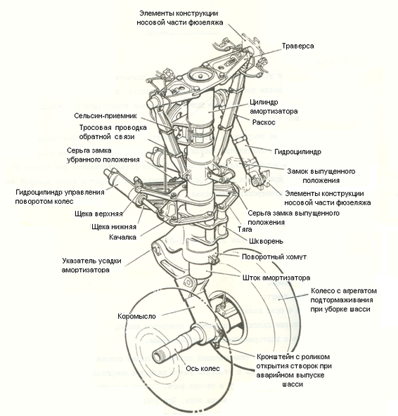 уборке шасси. Система управления поворотом колес носовой ноги – дистанционная, электрогидравлическая, следящая.