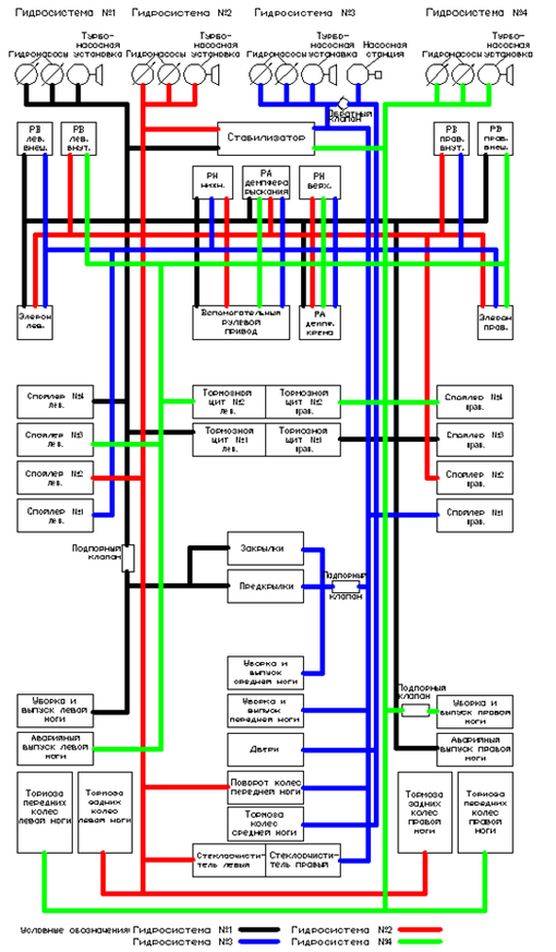 Рис. 2. Блок-схема гидросистемы самолёта.