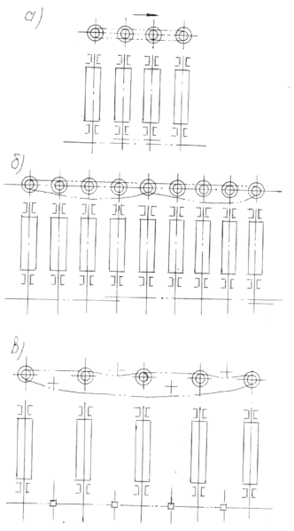 Привод роликов приводных конвейеров бывает: индивидуальный; групповой – через продольный вал с коническими колесами (рис. 1), через цепи или через ремни (рис. 2)