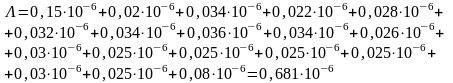 Рассчитаем интенсивность отказов всего устройства, состоящего из 18 элементов по формуле: