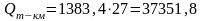 где Нл - линейная норма расхода топлива на 100 т-км транспортной работы грузового автомобиля, (Нл = 1,3 л); Di - надбавка к нормам расхода топлива при работе автомобилей в условиях, отличающихся от тех, для которых установлены линейные нормы, (Di = 20 %); Qt-km - количество т-км