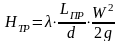 - коэффициент гидравлического сопротивления; LПР- геометрическая длина трубопровода; d-внутренний диаметр трубопровода, м; W- скорость течения жидкости в трубопроводе, м/с.