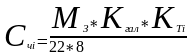 Часовую тарифную ставку і-того разряда (Счі) необходимо принять в зависимости от минимальной месячной заработной платы (МЗ), отраслевого коэффициента (Кгал), размер которого для машиностроения находится в пределах 2,5-2,84, а также месячного фонда рабочего времени, который в среднем равен 176 часов, и тарифного коэффициента (КТі). Часовая тарифная ставка определяется при помощи следующей формулы: