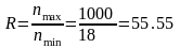 4. Предельные значения – nmin = 18об/мин; nmax = 1000об/мин.