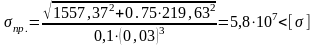 ‑ приведенное напряжение (изгиб плюс кручение) в Па;