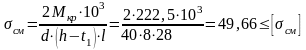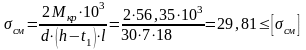 Выбранные шпонки необходимо проверять на смятие по формуле: