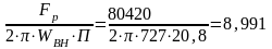 Fp=0,628·(ikmax·WBH)2·β·kp·10-6=0,628·(1378·727)2·1·0,958·10-6=80420 Н;