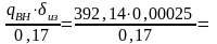 ΘомВН=k1k2k3·qВН0,6=1,0·1,0·1,05·0,35·392,140,6=13,3 0С , где (коэффициенты взяты в пункте 9.5 [1]):