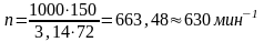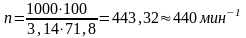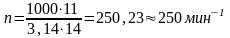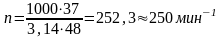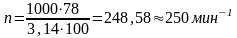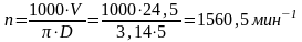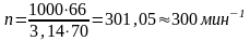 По рассчитанной скорости определяем число оборотов шпинделя: