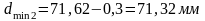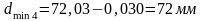 Таблица 2.Припуски на диаметральный размер ø 72Н7