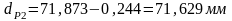 | Чистовое растачивание | 30 | - | 48,11 | - | 244,324 | 71,873 | Н9 74 | 71,796 | 71,87 | 0,25 | 0,476 |