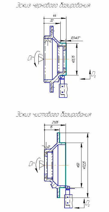 Для чернового базирования возьмем внутреннею цилиндрическую поверхность Ø92 и правый торец, потому как эти поверхности обеспечат хорошую устойчивость детали при обработке.