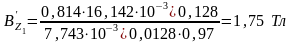 – индукция в воздушном зазоре, Тл, рассчитанная по ф. по окончательно принятому числу витков в фазе обмотки