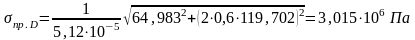 Напряжение на свободном конце вала в сечении D: