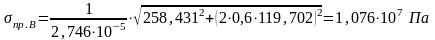 Напряжение на свободном конце вала в сечении B: