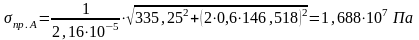 Напряжение на свободном конце вала в сечении А: