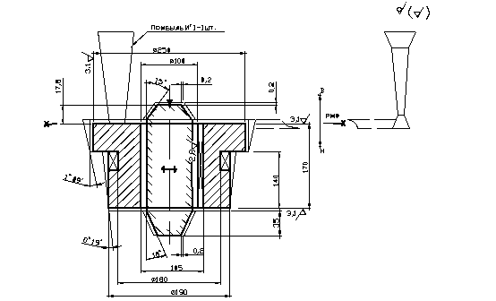 Отверстия небольшого диаметра усложняют технологический процесс получения отливки. На такие элементы припуски не назначают, а полностью получают механической обработкой. На чертеже на эти элементы назначают напуски. По полученным значениям припусков и номинальных размеров детали определяют размеры отливки по формуле: