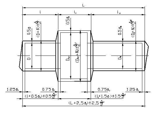 Ковка коротких уступов и уступов с малой высотой экономически нецелесообразна. В таких случаях форму поковки упрощают, назначая напуски. Основные припуски δ и предельные отклонения ±Δ/2 для поковок, получаемых ковкой на молотах по ГОСТ 7829-70.