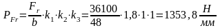 k1=1,8; k2=1; k3=1; b = B –2 *r = 55,0 –2*3,5 = 48,0 мм;