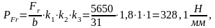 k1=1,8; k2=1; k3=1; b = B –2 *r = 30,0 –2*1,5 = 27,0 мм;