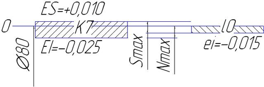Рисунок 4.13- Схема полей допусков соединения Ø80