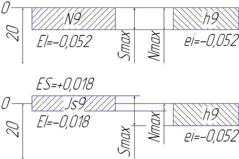 Nmax = es – EI = 0 – (- 0,018) = 0,018 мм.
