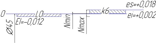 Допуск посадки: T N = 0,030 – 0,002 = 0,028 мм