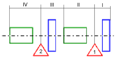 Для получения частотных характеристик шпиндельного узла разобъем его на участки и расчитаем их осевые моменты инерции и массу: